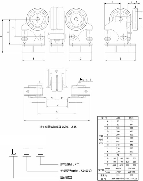 雙輪液壓滾輪罐耳是參考多年來各礦井使用滾輪罐耳的形式,廣泛吸取用戶的使用意見改進而成??筛鶕脩舻氖褂脳l件和要求,可采用橡膠緩沖、彈簧緩沖、碟簧緩沖、液壓緩沖、復合緩沖。其使用壽命長、安全可靠性高、維護方便等特點。